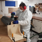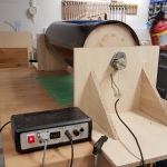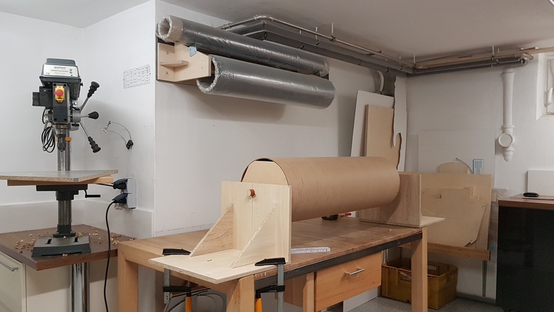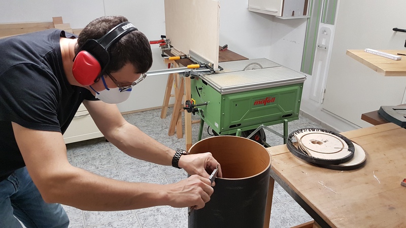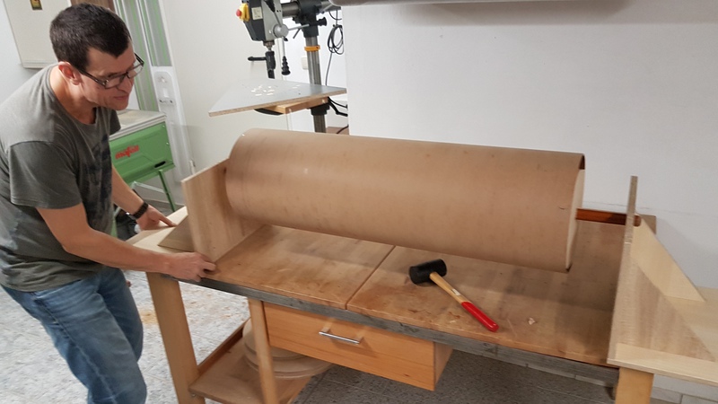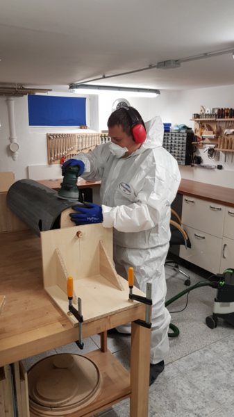 Patrick Müller, Astrofreund und begnadeter Schreiner sowie Teleskopbauer half uns bei den nun anstehenden Laminierarbeiten. In seinem bestens ausgestatteten Keller durften wir für die nächsten Monate zum Zweck der Tubus Herstellung einziehen. Wobei er uns mit sehr viel Rat und noch mehr Tat zur Seite stand.