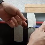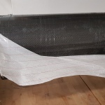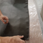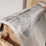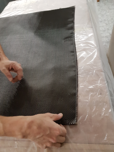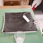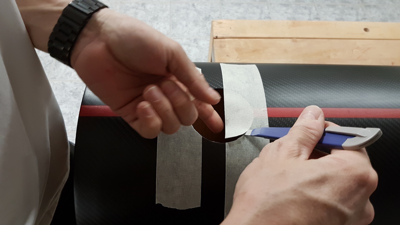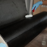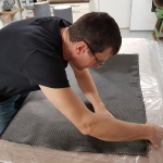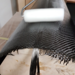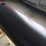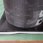 Um eine noch geringere Wärmeausdehnung zu erreichen mussten die Fasern des Kohlefasergewebes nun im 90° Winkel auf den Tubus laminiert werden. Dazu wurde das Material separat zugeschnitten und nach der gleichen Methode wie zuvor aufgetragen.