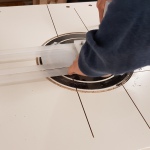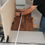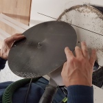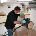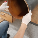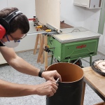 Nach dem erneuten Abtrocknen konnte das Abreißgewebe entfernt, grob geschliffen und der Tubus auf Länge abgesägt werden. Dazu kam wieder die Kreissäge mit Anschlägen zum Einsatz.