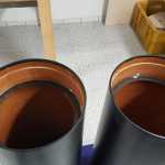 Die feingeschliffenen Tuben wurden nun an einen luftigeren Ort ausgelagert und von Patrick mit seidenmattem Klarlack überlackiert. Nun kam die Kohlefaserstruktur sehr gut heraus und in den Tubus konnte die Innenblende eingeklebt werden.