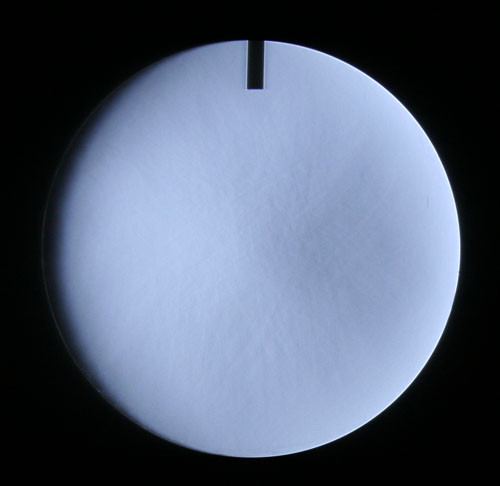 Nach ca. 6 Stunden Politur mit chaotischen Strichen, war der Spiegel in meinen Augen auspoliert und zeigte einen guten Rand und einen leichten Parabelschatten. Also beste Voraussetzungen, um mit dem Parabolisieren zu beginnen.
