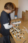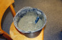 Nachdem der Spiegel durchs umgedrehte Okular mit darunter gehaltener Taschenlampe keine größeren Pits mehr zeigte, wurde es Zeit mit der Politur zu beginnen. Auch auf die Gefahr hin das Tool am Ende nicht mehr verwenden zu können, goss ich das 28° Pech auf die mit den Glassteinen beklebte Fläche. Mit einer Aluschiene presste ich im Abstand von 4 cm Rillen hinein und passte die so gewonnene Pechhaut der Spiegeloberfläche an.